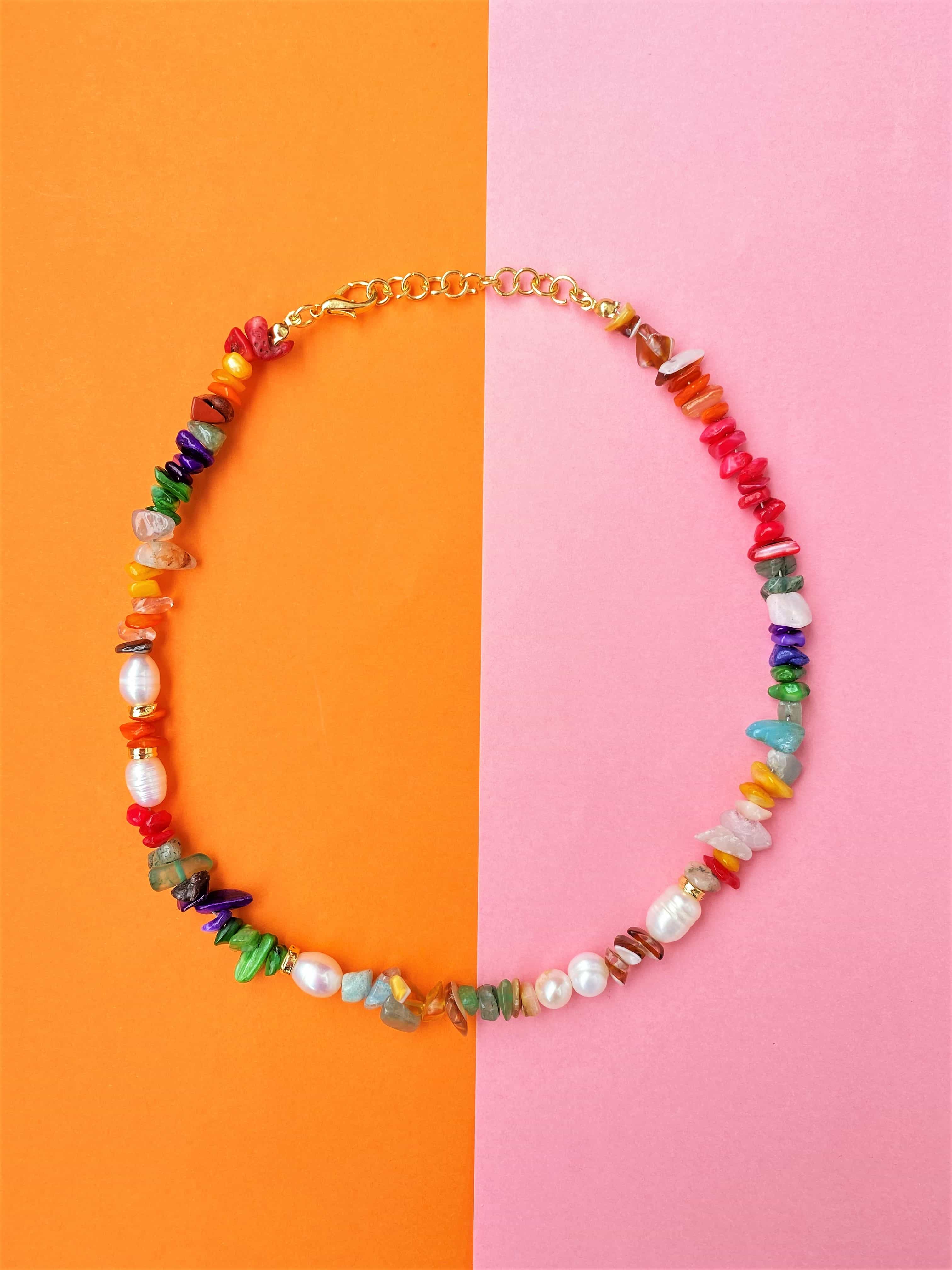 %-0 İndirimli Renkli Kırık Sedef ve İncili Kolye